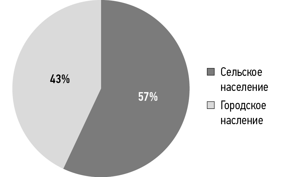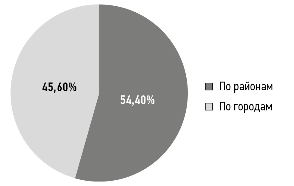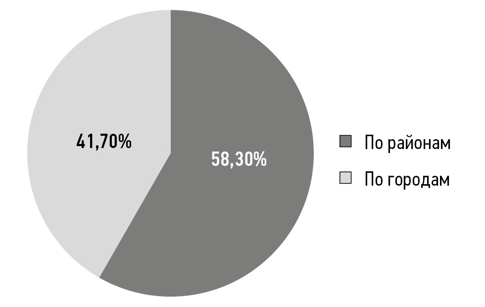 В структуре населения старше трудоспособного возраста удельный вес жителей городского населения в среднем составил 41,7%, удельный вес жителей районов ― 58,3% (рис. 7).
