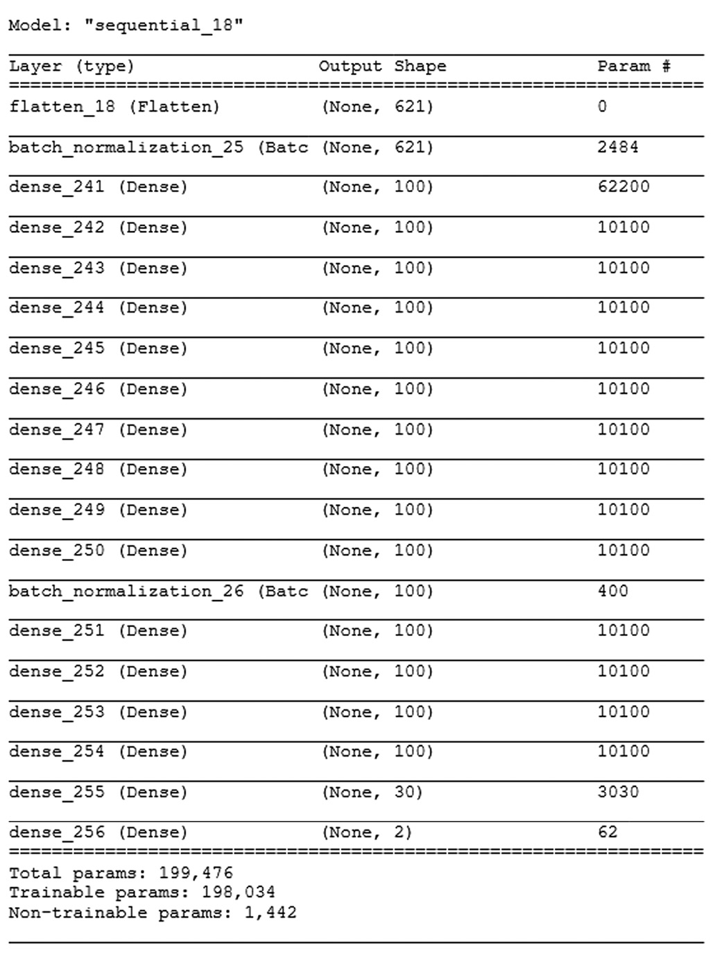 Здесь выпрямляющий слой Flatten выравнивает и формирует полученные данные в структуру в виде одной строки. Слой Batch Normalization позволяет увеличить продуктивность, стабильность и скорость обучения нейронной сети, нормализуя данные и приводя их к единичному диапазону. Слои Dense представляют собой полносвязные слои, в которых каждый нейрон текущего слоя связан со всеми нейронами предыдущего.