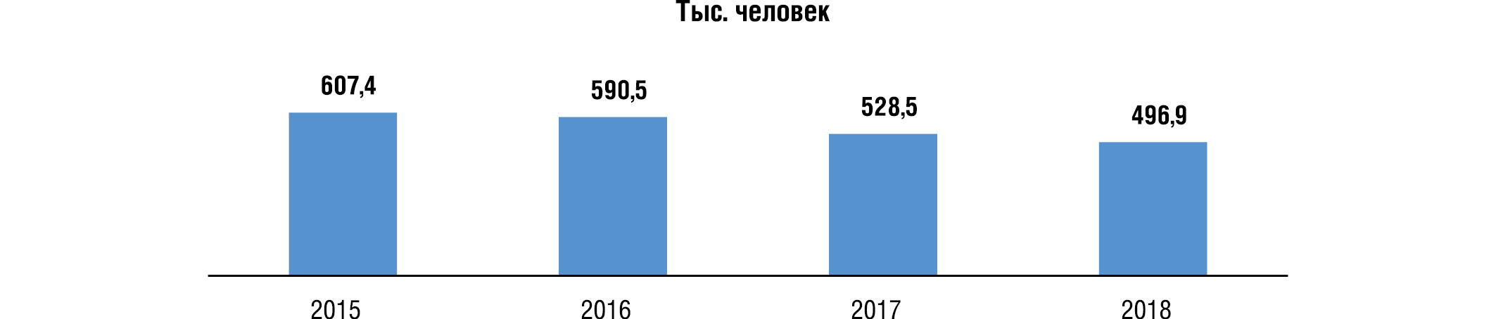 Рис. 6. Родилось детей больными или заболели (массой тела ≥ 1000 г) в Российской Федерации с 2015 по 2018 г. (данные Росстата, дата обновления: 05.02.2020)