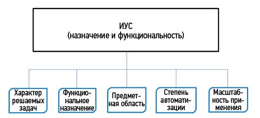 Рис. 2. Признаки классификации архитектур ИУС по назначению и функциональности.