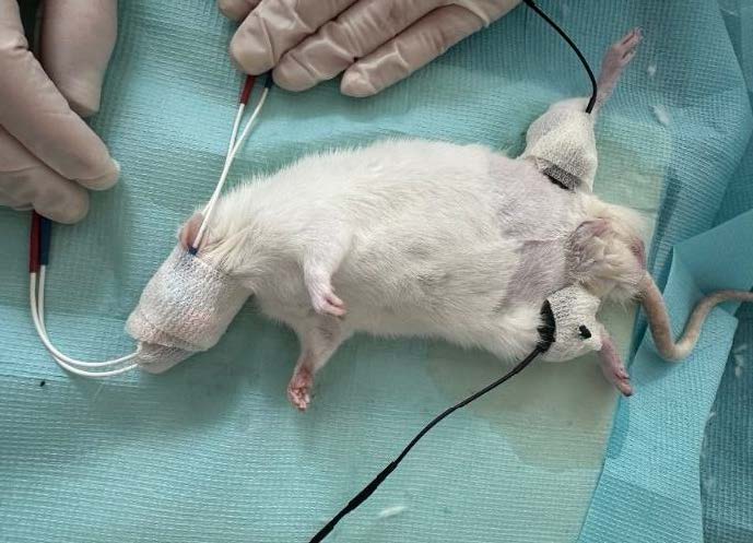 Рис. 3. Этап проведения электромиографического исследования на лабораторном животном