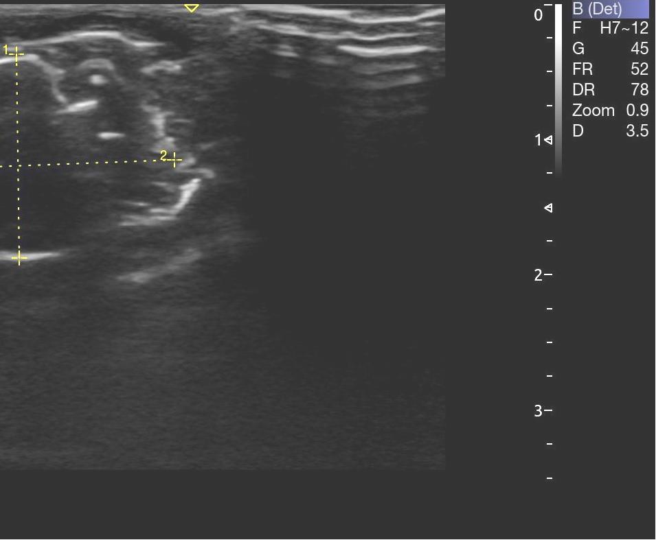 Для подтверждения наличия/отсутствия триггерных точек (ТТ) целесообразно проводить ультразвуковое исследование, которое позволяет неинвазивно оценить как структуру жевательной мышцы, так и определить диаметр ТТ, что является важным параметром при оценке эффективности лечения [12].