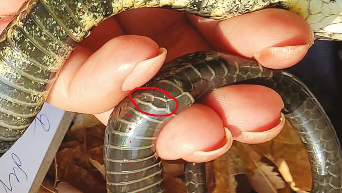 2. Рис. 1. Аберрация фолидоза брюха у водяного ужа Natrix tessellata