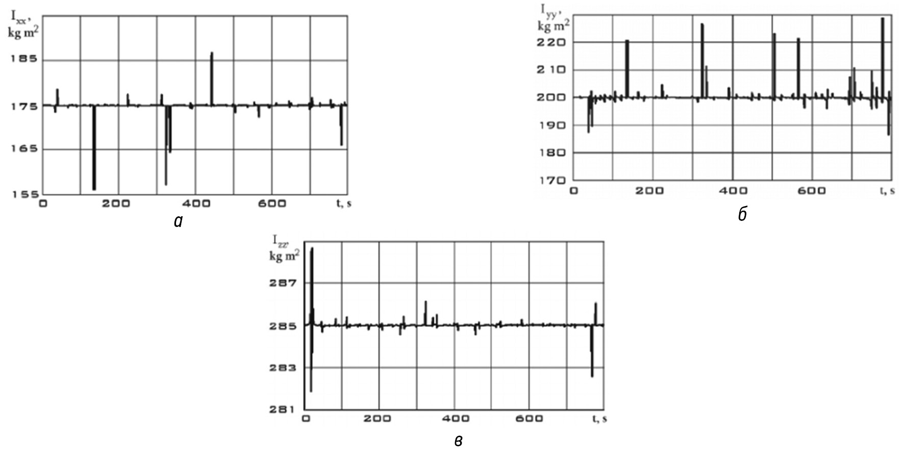 Результаты. Предложены графики изменения параметров вращательного движения и главных диагональных составляющих тензора инерции.